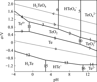 图4 298.15 K时Te-H2O2-H2O系φ-pH图