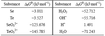 表6 298.15 K时Se-H2O2-H2O和Te-H2O2-H2O体系中主要物质的标准吉布斯自由能