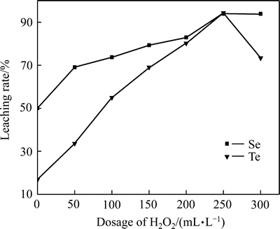 Fig. 8 Effect of amount of hydrogen peroxide on leaching rates of selenium and tellurium