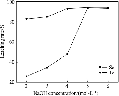 Fig. 9 Effect of NaOH concentration on leaching rates of selenium and tellurium