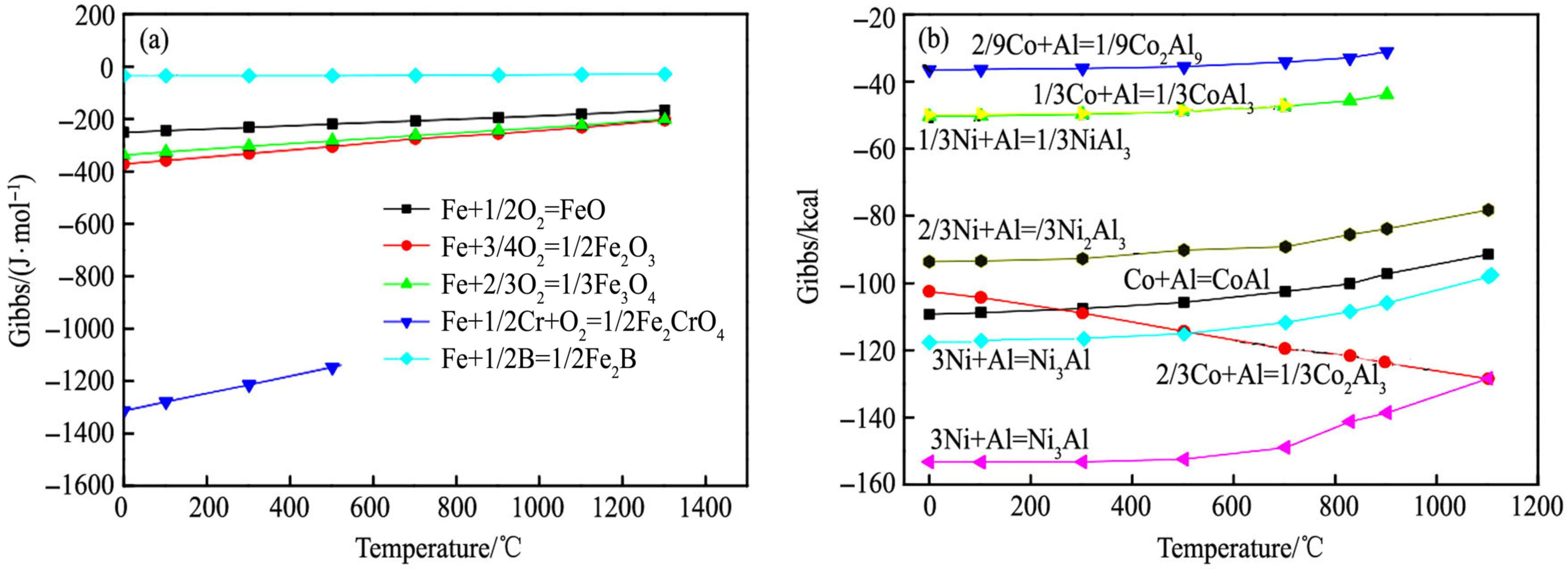为更深入研究非晶粉末组分在热喷涂过程中可能发生的化学反应, 本研究采用热力学数据库