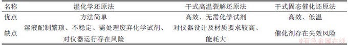 上述3种氧化态汞还原方法的优缺点对比见表2。