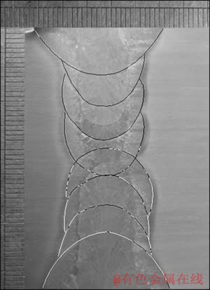 虽然钛合金的导热性较差,但是相对于表层金属一侧的空气来说还是较强的,所以这使得表层金属具有了择向生长的特点,最终在其焊缝的中心表层生成粗大的柱状晶,生长方向垂直于焊道表面,如图6(b)所示。
