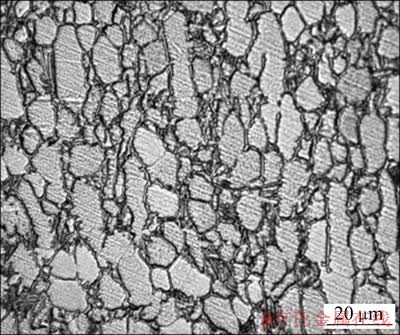 由图3可知,组织细小且均匀,图中亮白色相为初生α相,它在高温β晶粒内部析出,组织呈等轴结构,β相分布在等轴的α相之间。
