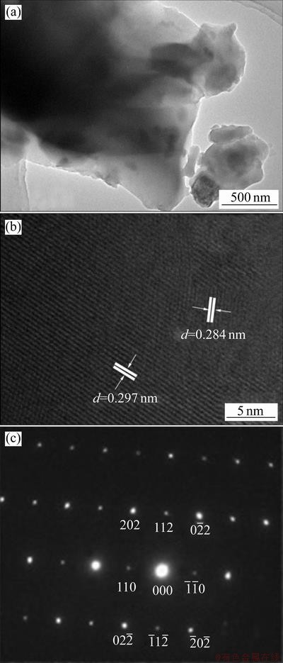 Fig. 3 TEM image(a), HRTEM image(b) and SAED photographs(c) of sample