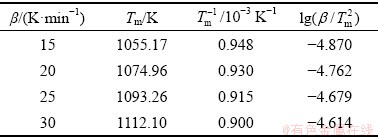 式中:Tm为峰值温度。根据Kissinger法,使用