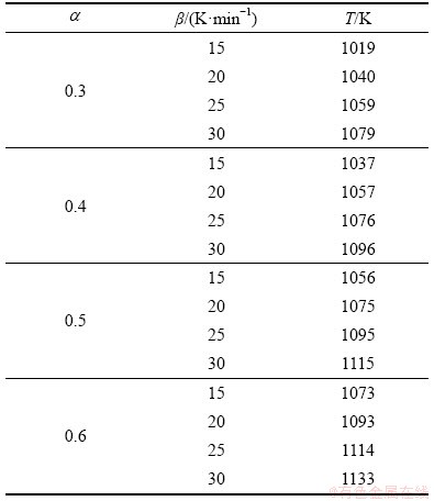 由图7可知,升温速率为15、20、25和30 K/min时,对应的