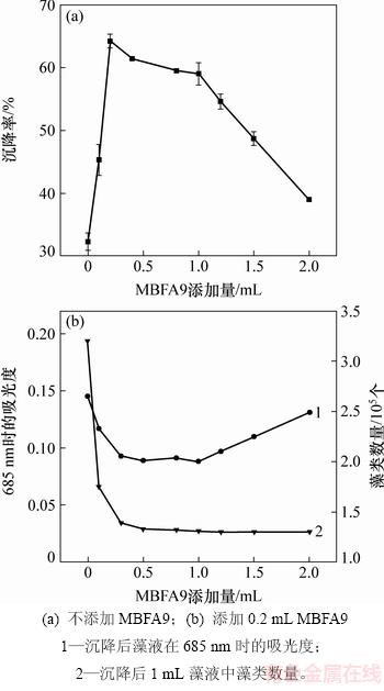 2.2 MBFA9添加量对小球藻沉降率的影响