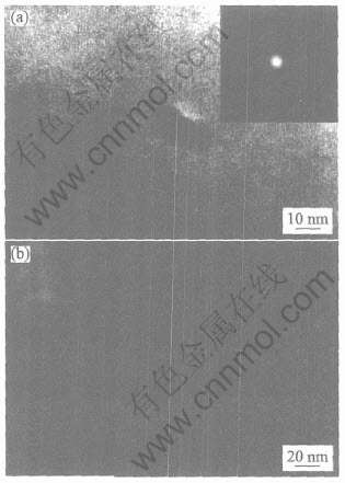 Fig.6 HRTEM images and selected area electron diffraction pattern for as-cast (a) and extruded(b) Zr41.2Ti13.8Cu12.5Ni10Be22.5 amorphous alloy