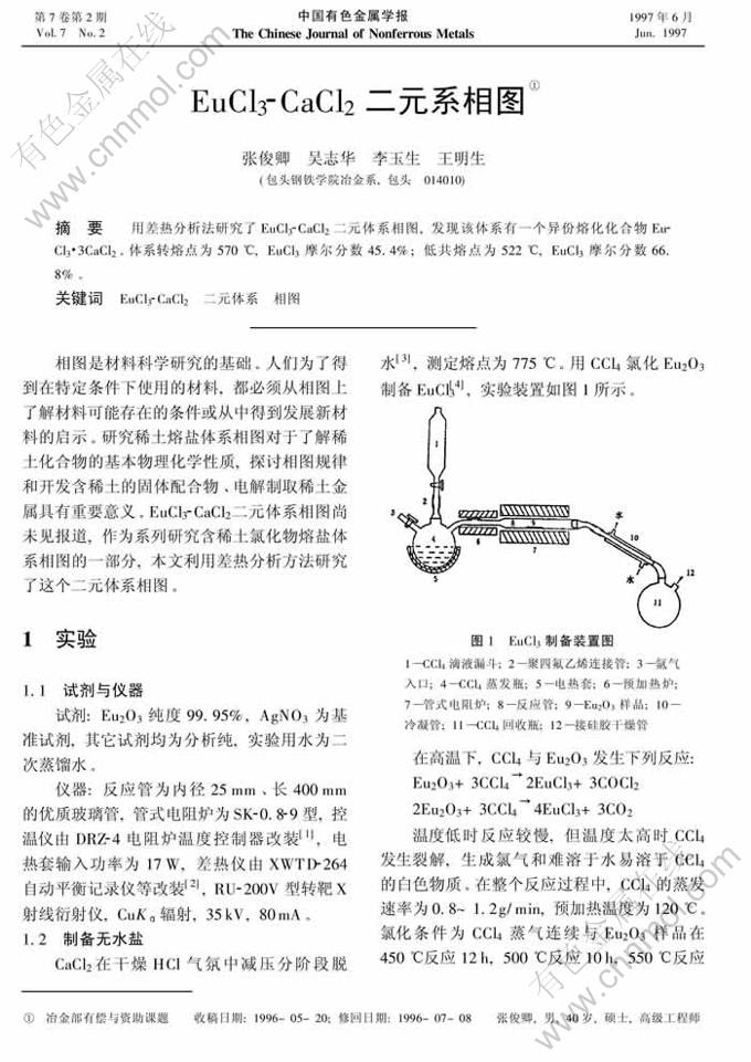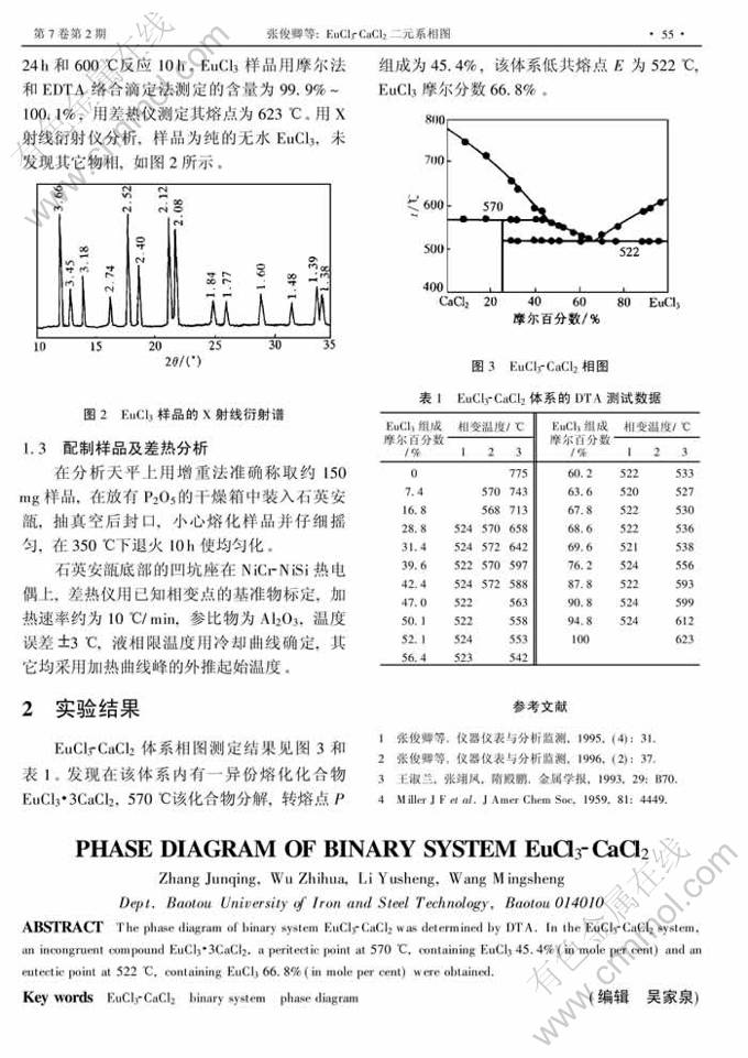 Key words:EuCl3-CaCl2 binary system phase diagram