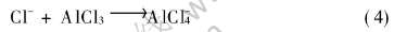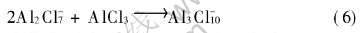 反应生成 AlCl-4负离子。 因此, 在碱性区, 离子液体中存在负离子Cl-和AlCl-4。 如果每个正离子与两个负离子配位, 则此区域内可能存在的低聚体有: