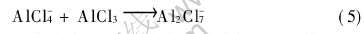 在0.5〈x(AlCl3) 〈0.667区域内, 由本文的数据(图1)可知, AlCl3-BMIC离子液体的电导率仍然随x(AlCl3)的增加而增大。 在此区域内, 离子液体呈路易斯酸性, 体系中的负离子AlCl-4与加入的AlCl3 反应[2] :