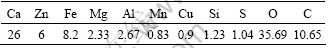 The zinciferous sludge sample was generated from synthetic wastewater treatment process and it contained about 90% moisture. The sample was filtered and dried at 104 ℃ in vacuum oven and then was analyzed by energy spectrometry. The main composition of sample with zinc, iron and calcium was detected by chemistry titration analysis and the result is shown in Table 1.