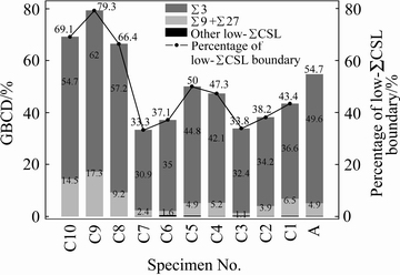 [16] LIU T G, XIA S, LI H, ZHOU B X, QIN B. The highly twinned grain boundary network formation during grain boundary engineering[J]. Mater Lett, 2014, 133: 97-100.