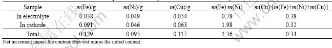 Table 4 Net increments and mass ratio of impurities in electrolyte and cathode after electrolysis for 40 h