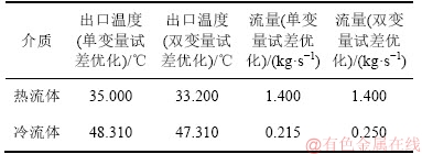 利用单变量试差法和双变量试差法分别进行计算,冷(热)流体各参数试差计算结果如表2所示,冷(热)流体优化后的热容流率之比如表3所示。
