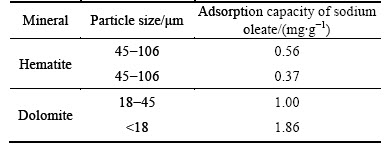 Table 2 Sodium oleate adsorption capacity on different minerals