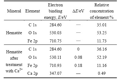 Table 5 XPS analysis results of hematite before and after treatment with Ca2+