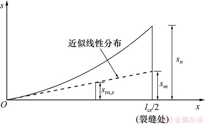 。其中:ss和sc分别表示非预应力钢筋和混凝土应力;Ec和Es分别表示混凝土和非预应力钢筋弹性模量;s为钢筋与混凝土之间的相对滑移;ss,n为疲劳荷载作用下,计算得到的开裂截面处的非预应力钢筋应力。