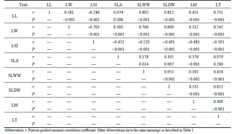 Table 3 Relationship among leaf functional traits of twelve plant species