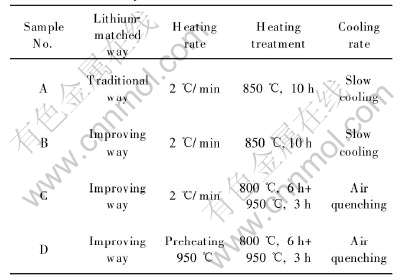 对于降温速率研究作者也进行了一些实验, 发现采用随炉冷却、 快速风冷(即材料烧结完成高温状态下取出, 鼓风冷却)和淬冷(物料烧结好后直接放到液氮里瞬间冷却)的效果相差不大, 相对而言快速风冷和淬冷的效果相对好些。 这和镍锰类材料前驱体制备和材料本身的锂镍锰比例有关, 对于采用共沉淀法制备氢氧化物前驱体, 并合成标准比例的LiNi0.5Mn0.5O2材料, 冷却方式对其电化学性能影响效果不大, 但采用其它类型的前驱物来制备镍锰类材料, 特别是富锂态镍锰材料(Li1+xNiy-MnzO2), 冷却速度对材料的影响却很大, 因为材料比例不同, 其中间体的转变也有所不同, 对冷却方式的要求也不同, 在这里不详细讨论, 可参见文献[15]。